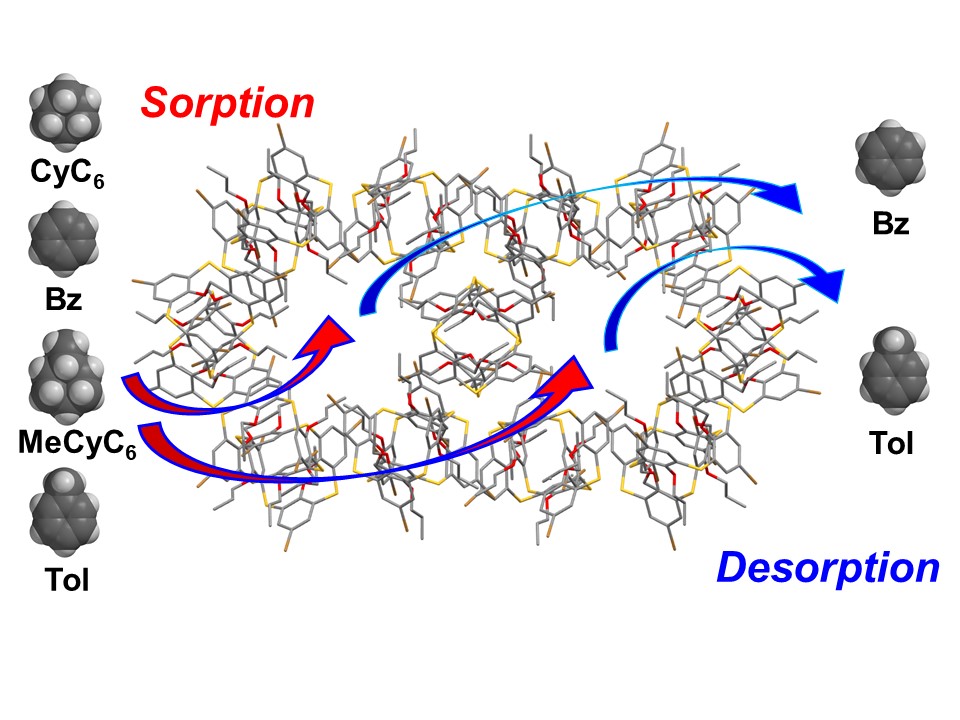 Crystalline thiacalixarene assembly for adsorption ability toward linear and branched C6 alkane vapor isomers