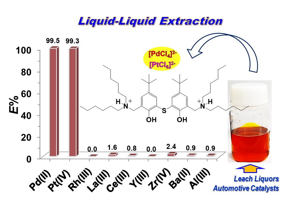 Thiodiphenol-Basedn-Dialkylamino Extractants for Selective Platinum Group Metal Separation from Automotive Catalysts