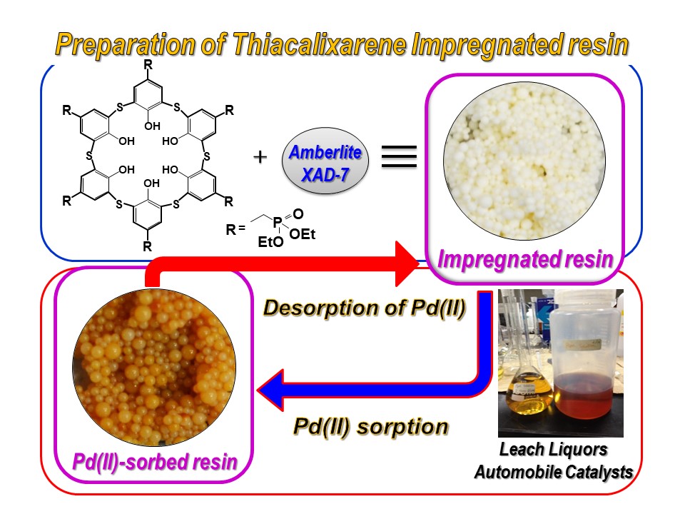 Selective sorption of palladium by thiocarbamoyl–substituted thiacalix[n]arene derivatives immobilized in amberlite resin: Application to leach liquors of automotive catalysts