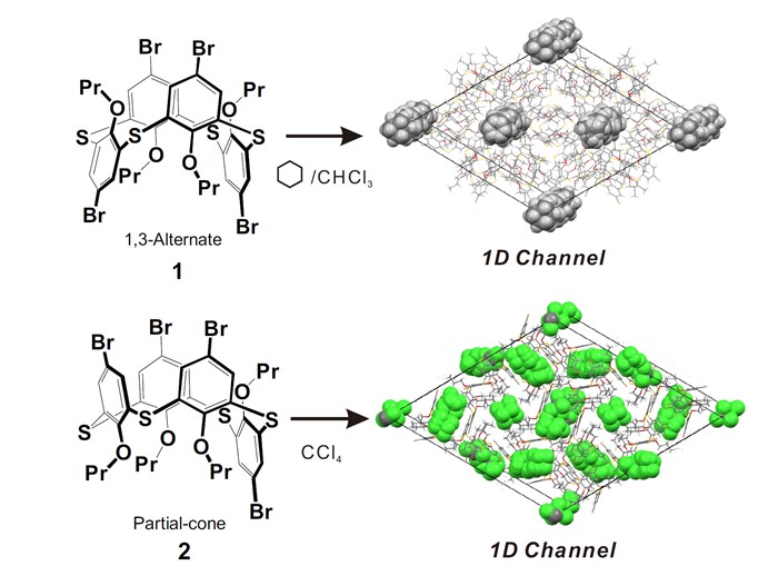 有機化合物は炭素-炭素および炭素-水素結合を有することから、本チアカリックスアレーン有機結晶は、有機化合物のガス分子の分離・貯蔵材料として展開が期待されます。